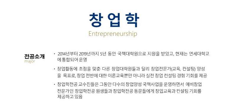 ■ 창업학전공 (해당 교과목은 참고용으로 학기별 변경될 수 있습니다)